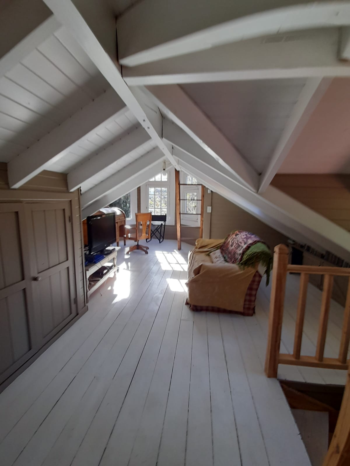 Planta Alta: Amplio altillo (techo bajo) Salón de Usos Múltiples, ideal para estudio o playroom, con Toilet.
