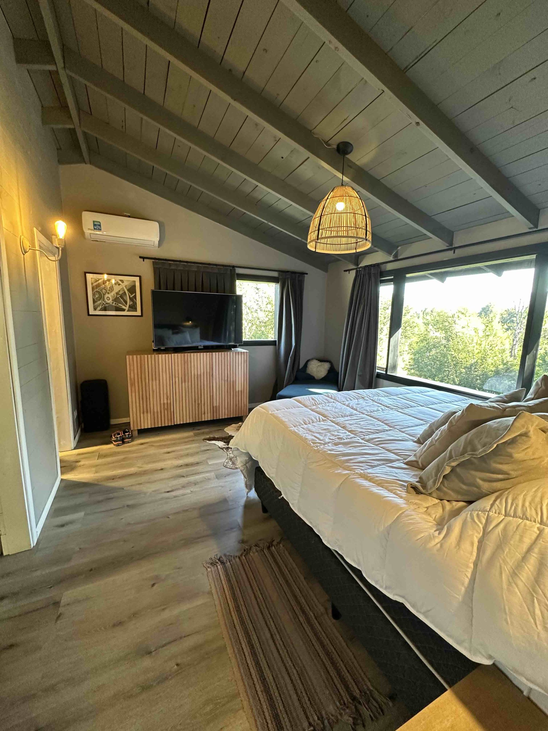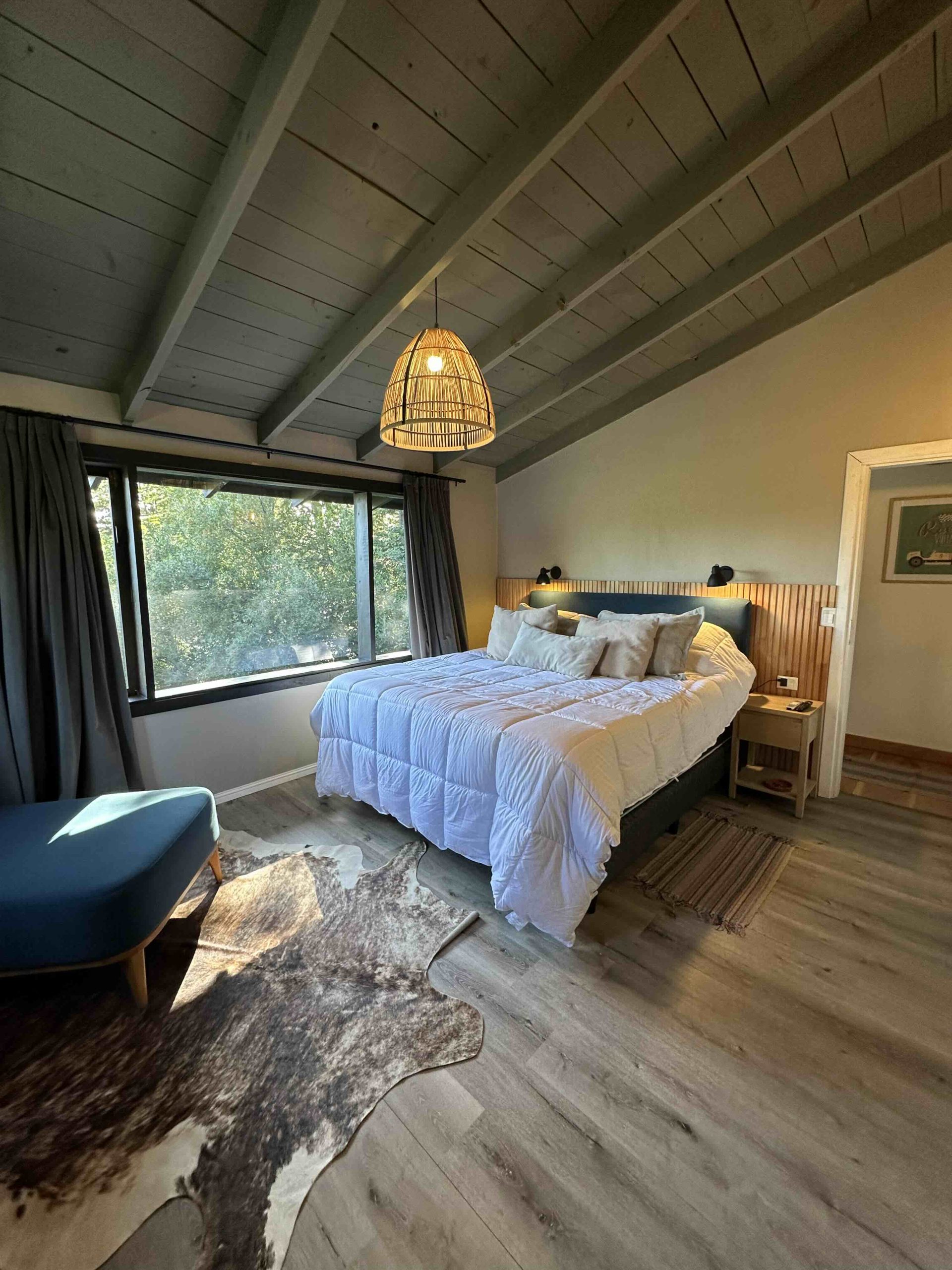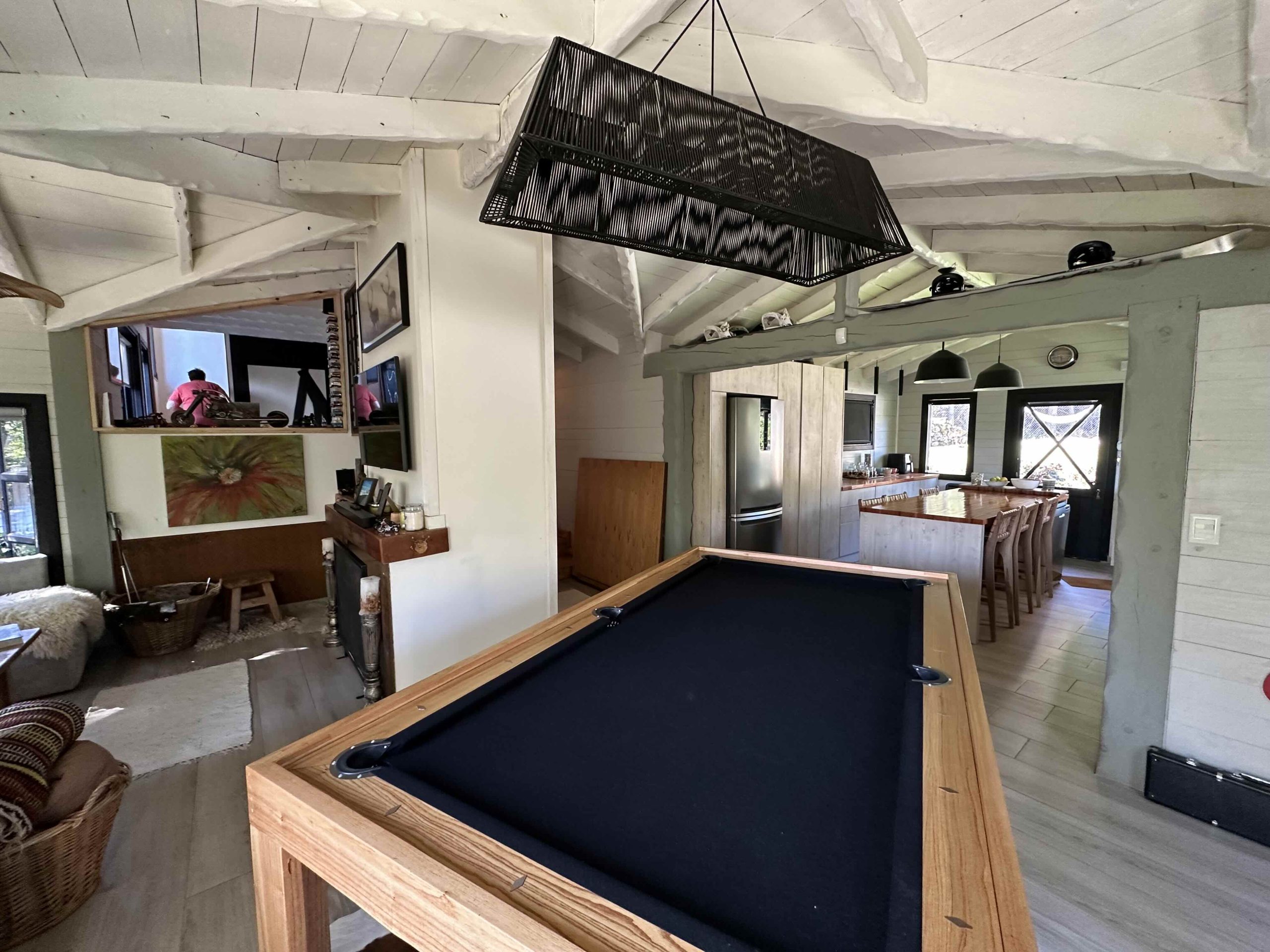Jardin diseñado por paisajista, dotado de especies autóctonas, frutales y flores de diversas variedades. Además el exterior se encuentra iluminado en toda su extensión y tiene riego por aspersión automatizado. Independiente a la casa, hay un garage semicubierto con capacidad para dos automóviles, y un taller o sala de herramientas anexo. Sector de fogon.