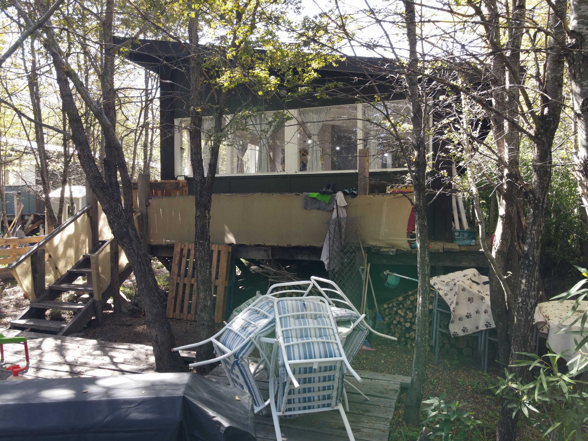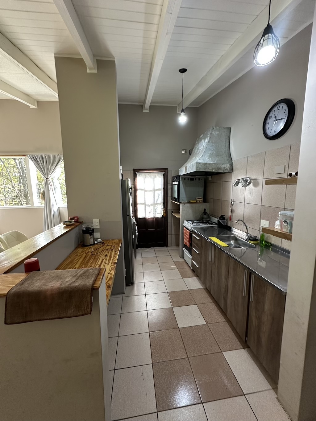 La construcción se realizó sobre pilotes de hormigón, elevada un metro del suelo. Consta de dos dormitorios con placards y con baños completos en suite, living con salida al exterior, comedor y cocina integrada. Gas natural, agua de red y energía eléctrica. Superficie edificada 95,96 m2 cubiertos mas 29,24 semi cubiertos sobre un lote de 863 metros cuadrados de superficie con un pequeño arroyo/canal.
