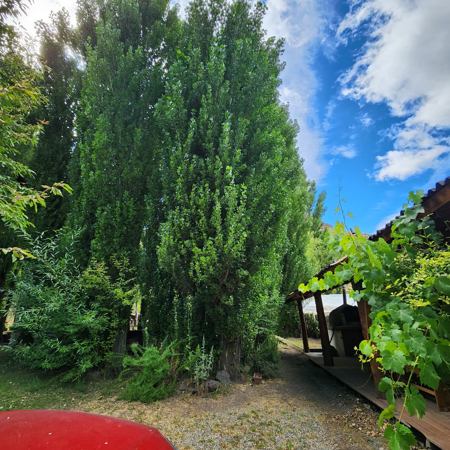 • Arbolado, cortina parcial de álamos. Otros árboles perimetrales, nativos y exóticos aclimatados.