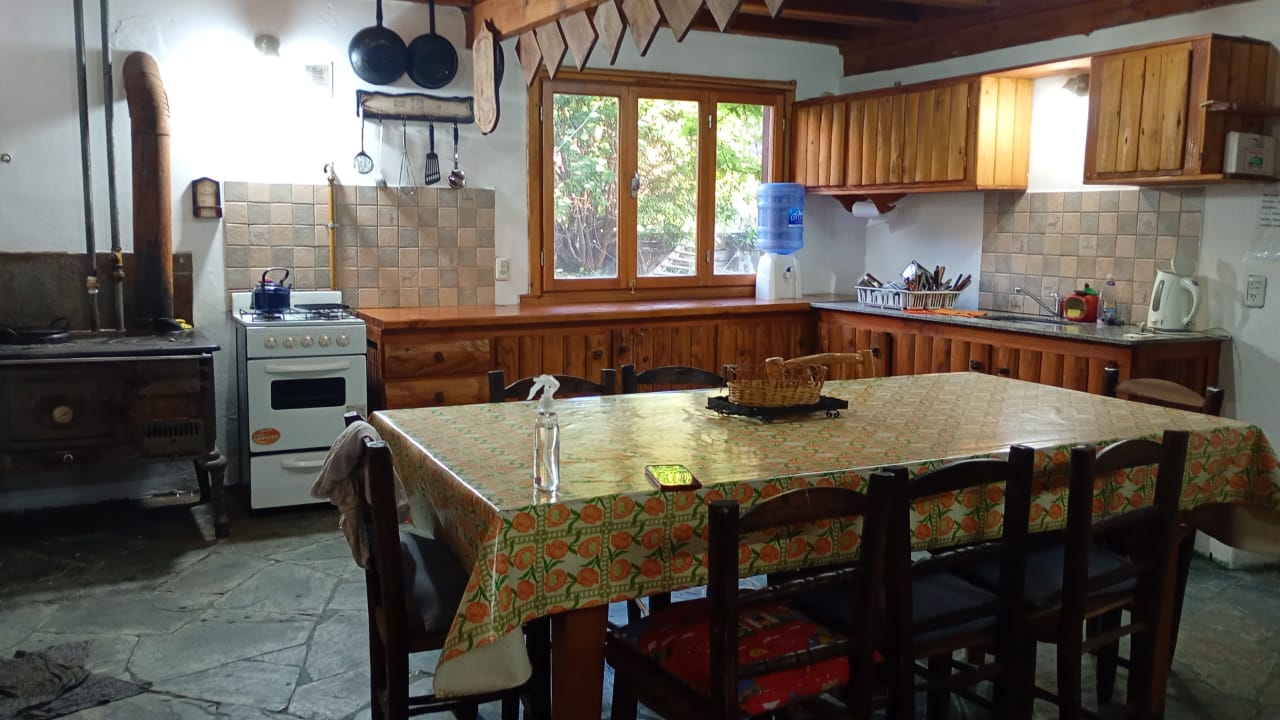 Planta baja: Cocina-living-comedor con importante estufa hogar. Cocina económica con serpentina y tanque de agua caliente funcionando, termotanque eléctrico, cocina a gas, mobiliario rústico en madera. Despensa,  Un calefactor a gas, Baño completo, una habitación.